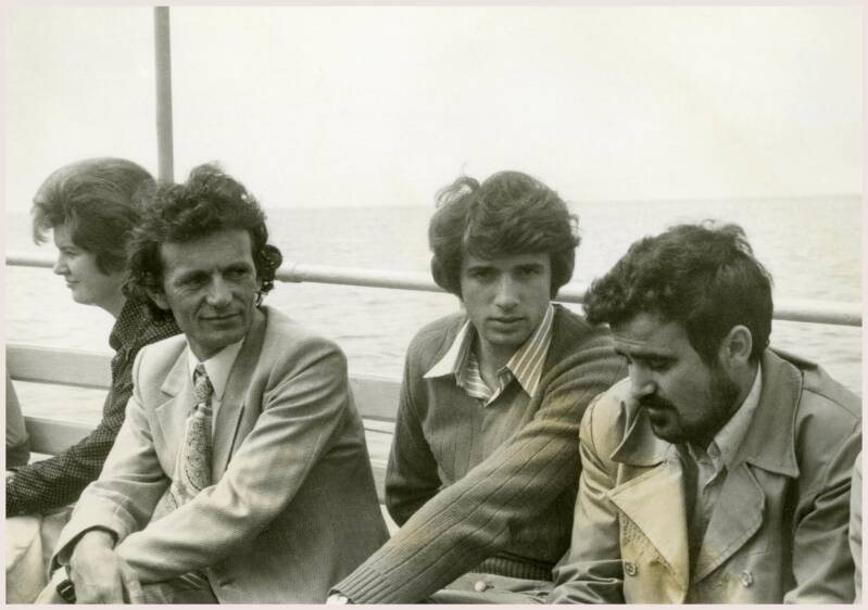 Radovan Pavlovski, Aldo Kliman i Risto Lazarov na „Struškim večerima poezije” 1972. godine. Na brodu, na putu iz Struge za Ohrid.
